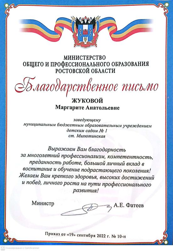 | Занимаемая должность | Заведующий МБДОУ детским садом №1 ст. Милютинская |